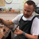 - Once you are certain there are no knots in your swab, carefully begin lowering the weighted end of the swab into your instrument. Notice I am holding the swab so it cannot bunch up on itself as I start to lower it into the instrument. Notice my eyes are on the swab and instrument, not my friends next to me as they are packing up their instruments.