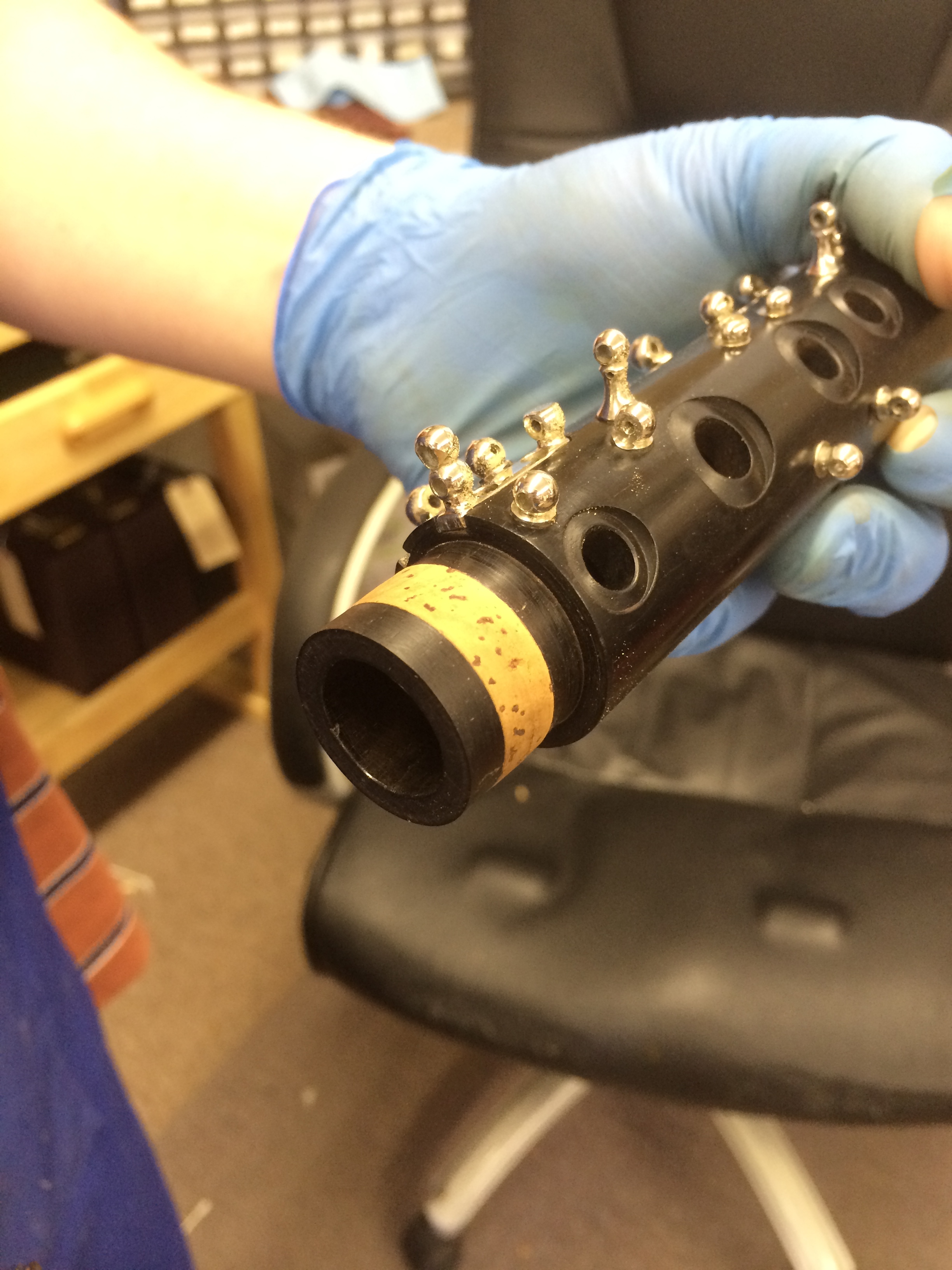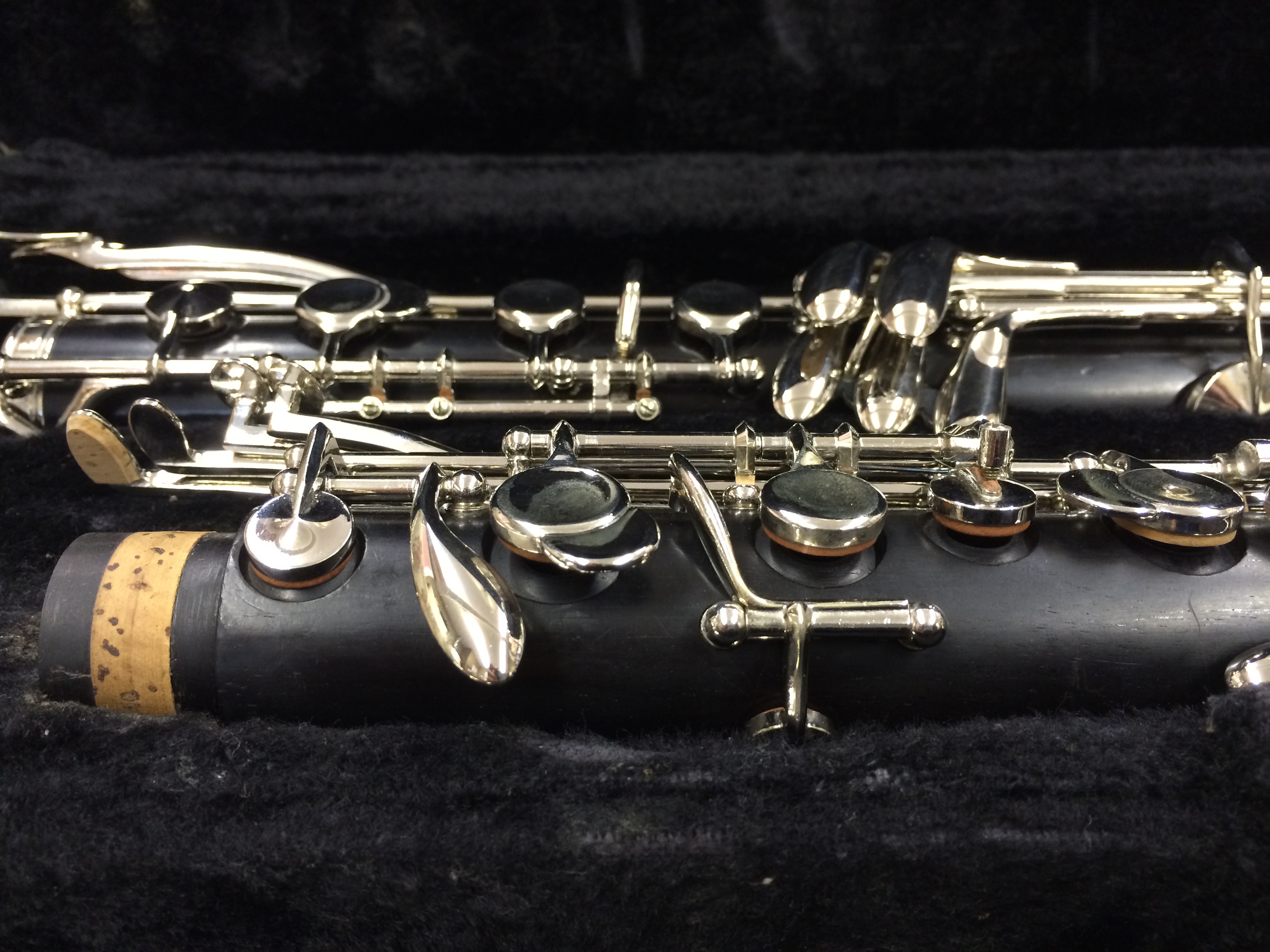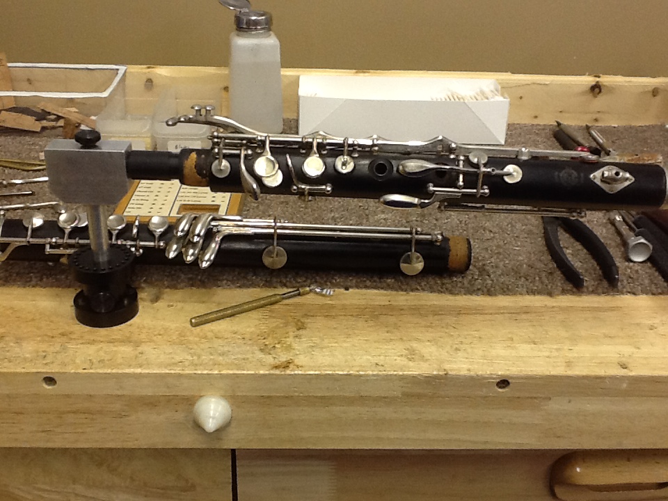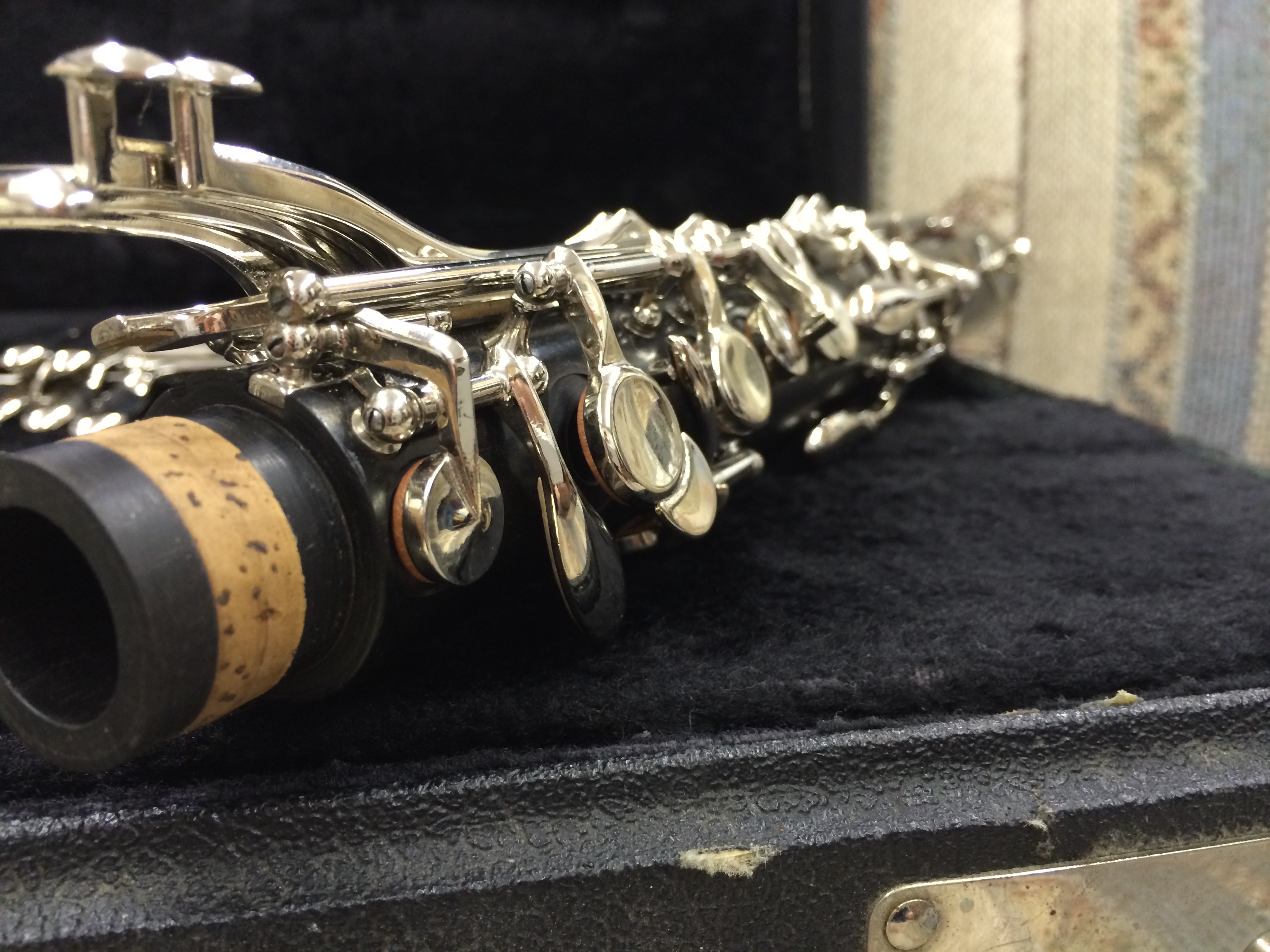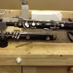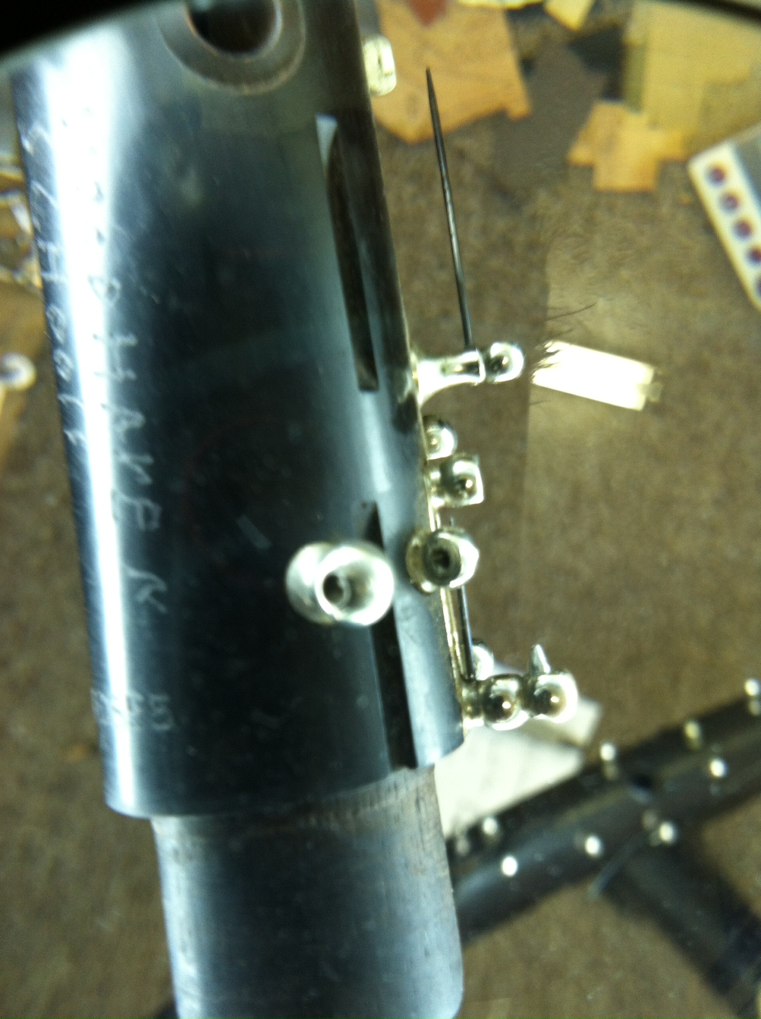 Jonathan had the pleasure of overhauling a Selmer Paris Alto Clarinet recently. The alto is very old and has had average repair/maintenance for many years. This was one of those cases where nothing that we could do would make it better without a full mechanical overhaul. This alto also had an extremely wobbly center tenon due to rounded off tenon rails which is from years of assembling and disassembling. To correct the wobbly center tenon, Jonathan installed a center tenon sleeve. Jonathan did an outstanding job bringing this alto back to life! This could possibly be the only alto in the world that actually plays:) It actually sounded great too:) I know, I know; it’s really hard to believe but it’s true! OK, enough alto joking around. Check out these pics of before and after.